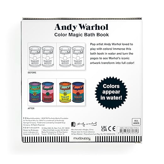 Take bath time fun to the next level: The Andy Warhol Color Magic Bath Book from Mudpuppy is sure to keep babies and toddlers entertained during bath time. Featuring illustrations of Warhol's iconic images, it is truly a one-of-a-kind experience that will be enjoyed time and time again.