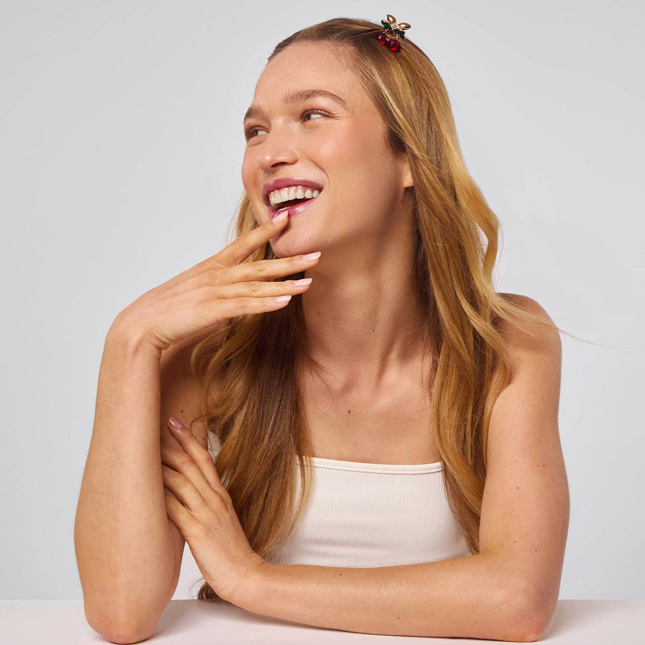 Dependable and fuss-free claw clips that keep your hair just right. Sporting a bright cherry design that adds a fun and flirty vibe. Perfect for all hair types and lengths, even fine or short strands. Glittering red rhinestones give a splash of sparkle. Their small, flexible shape and rounded teeth hold hair securely in place. Add a playful pop to any outfit with these charming and handy accessories.