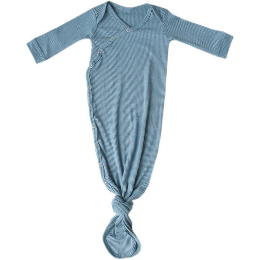Made from the same soft, stretchy premium knit fabric as our popular swaddles, this Copper Pearl Rib Knit Knotted Gown features a bottom tie for quick diaper changes and plenty of room to grow. Measuring 25 inches long by 8 inches wide, it’s designed to fit comfortably and generously. Handy snaps and fold-over mitts keep dressing easy and tiny hands scratch-free. With its fresh, modern style, this gown adds a fun flair to any baby’s wardrobe and pairs perfectly with other Copper Pearl favorites for a coordinated look that’s as cute as can be! Includes a matching hat.
