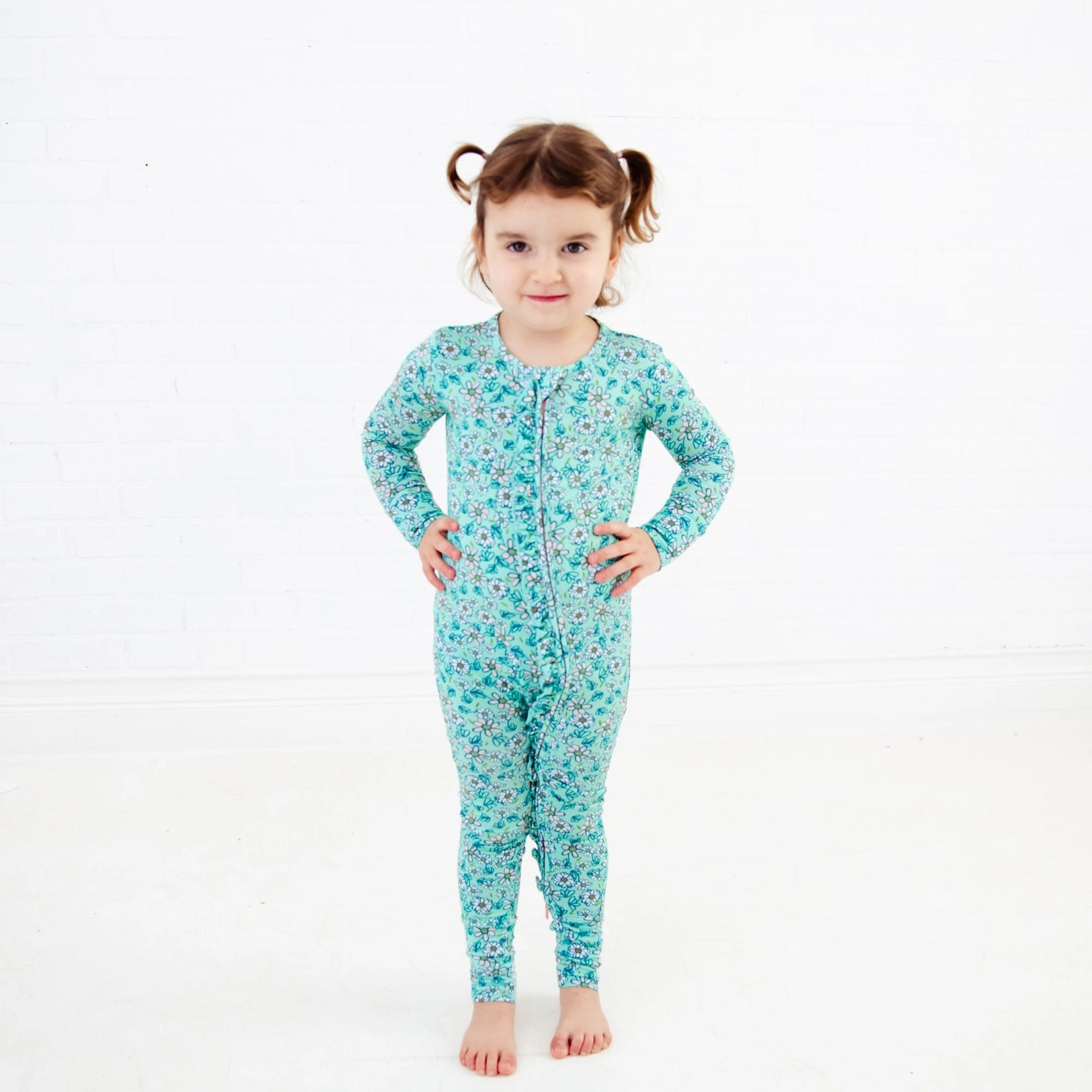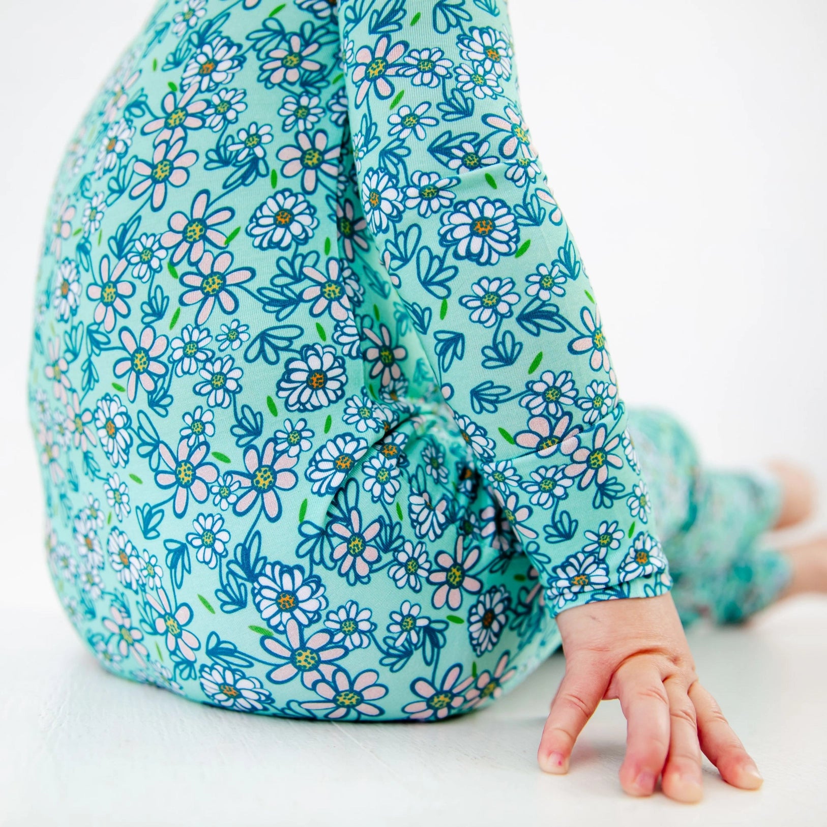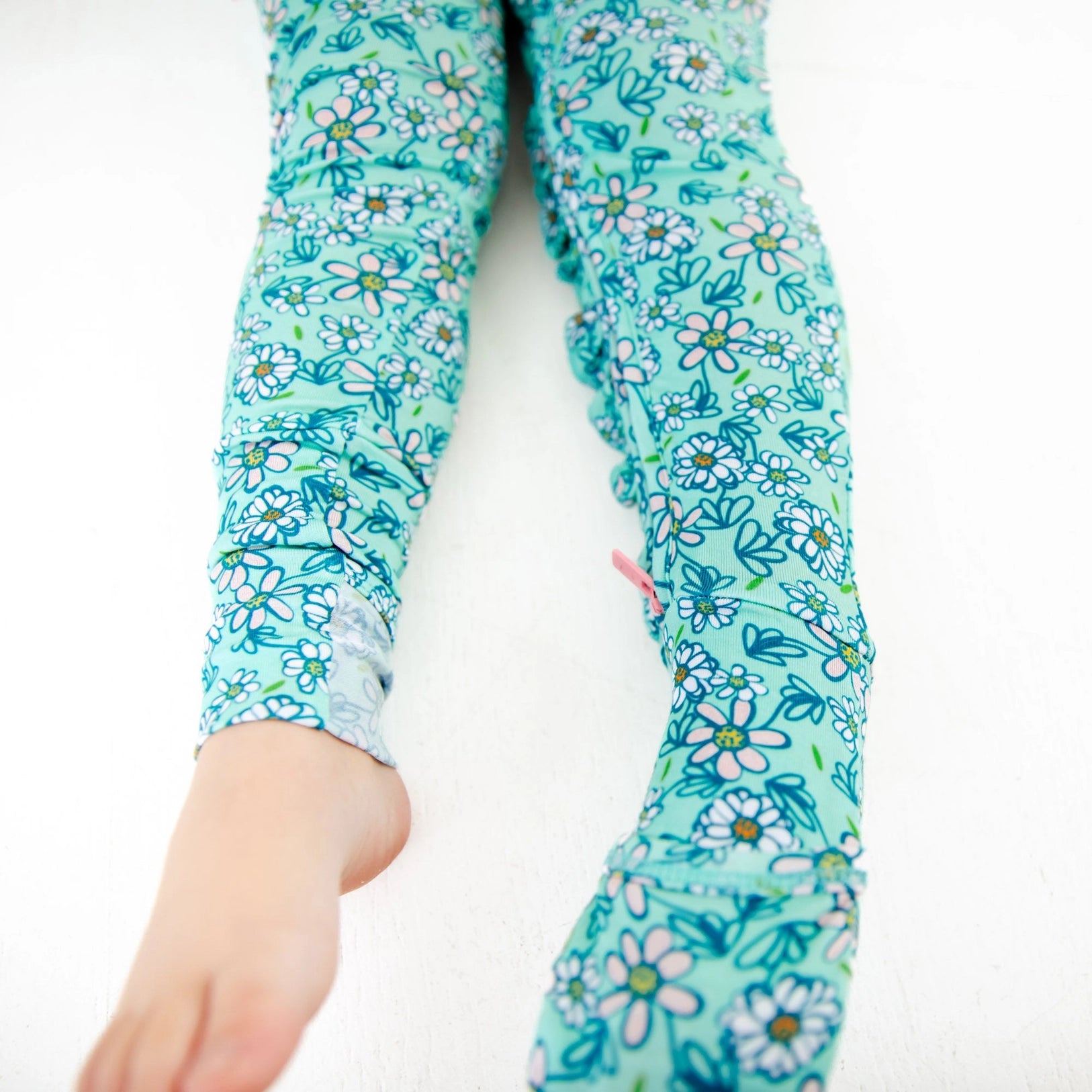 This refreshing mint green daisy print, with its delicate floral pattern, brings a touch of springtime cheer! Whether you prefer a footie or romper, this all-in-one convertible piece does it all! Made with two way zippers for easy diaper changes, this adorable romper features fold over cuffs on the ankle which converts this romper to a footie as desired. This piece is designed to last twice as long as the average footie, due to the extra length and super stretchy fabric. * 95% Viscose from Bamboo, 5% Spandex * 0-3mo, 3-6mo and 6-12mo sizes also feature fold over hand cuffs. * Our Fabric is not treated with harsh chemicals * Tagless! Our convertible footies are free from anything itchy that might irritate your little one's skin. * Stretchy, Stylish and Comfortable! What is it about Dreamiere Bamboo? Our bamboo fabric stays about 3 degrees cooler than cotton on average. It’s great for kids with eczema. It's great for hot sleepers and sensitive skin. In warm, humid weather, our bamboo won't stick to your child’s skin. It's sure to keep your little one drier, cooler and more comfortable year-round!