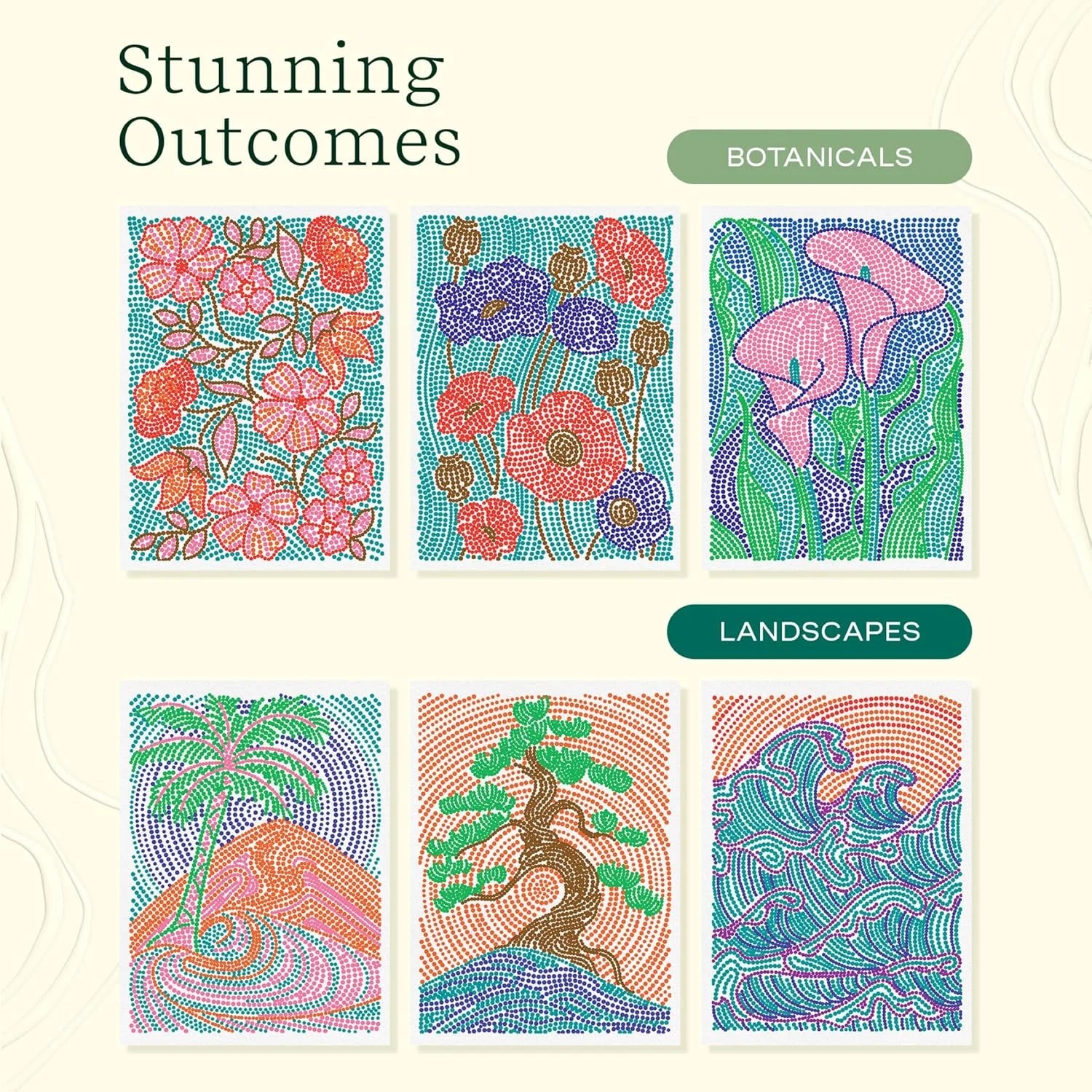 Discover the art of mindful dots with Lifelines FlowArt™ – Dot-By-Letter, Botanicals! This clever activity pad transforms relaxation into an interactive adventure where you match letters to colors and fill them with dot markers to reveal gorgeous botanical masterpieces. With 20 soothing scenes designed to spark joy and calm, it's your ticket to a blissful flow state anytime, anywhere. The playful press-and-tap technique keeps your hands happily busy while your mind unwinds, whether you're taking a break, settling in for bed, or exploring new places. Everything you need comes neatly packaged with four double-sided markers tucked into a snap-in storage tray – grab it and go! Created by Melissa Bernstein of Melissa & Doug, this innovative FlowArt experience proves that relaxation can be wonderfully creative and endlessly portable.