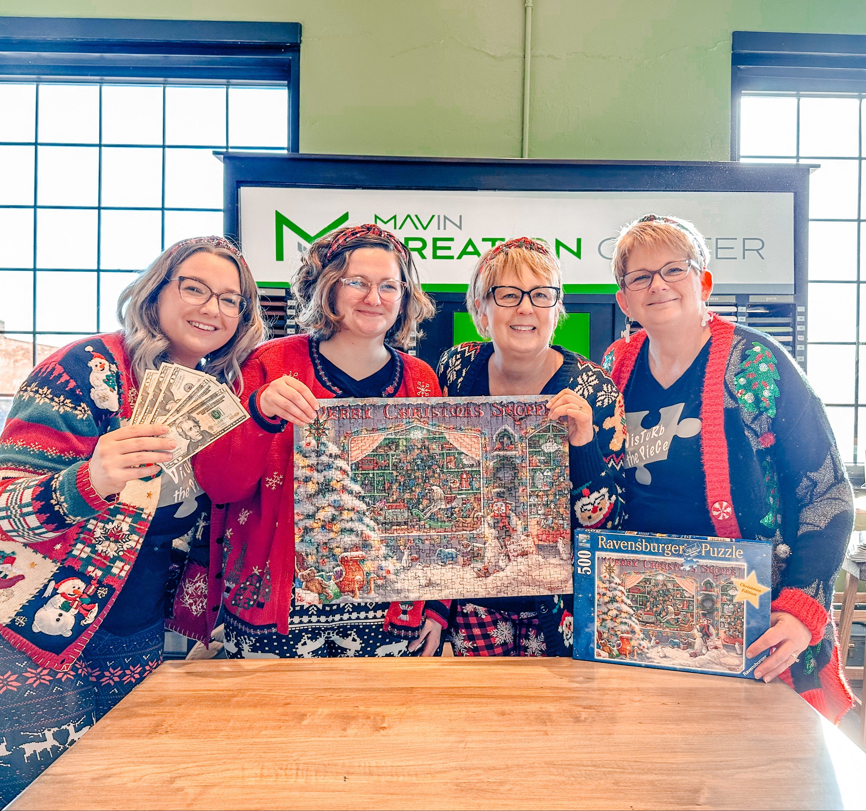 Join us on Sunday, December 14th at 1pm for a puzzle competition with a festive twist! Teams of up to 4 people will have two hours to complete a 500 piece Ravensburger puzzle. The three fastest times will win prizes!