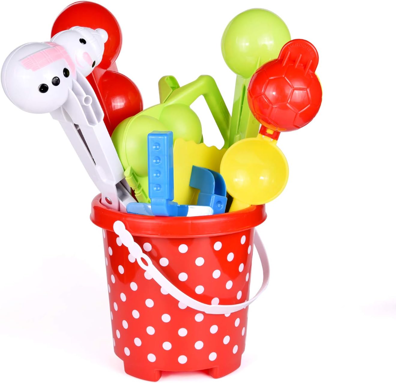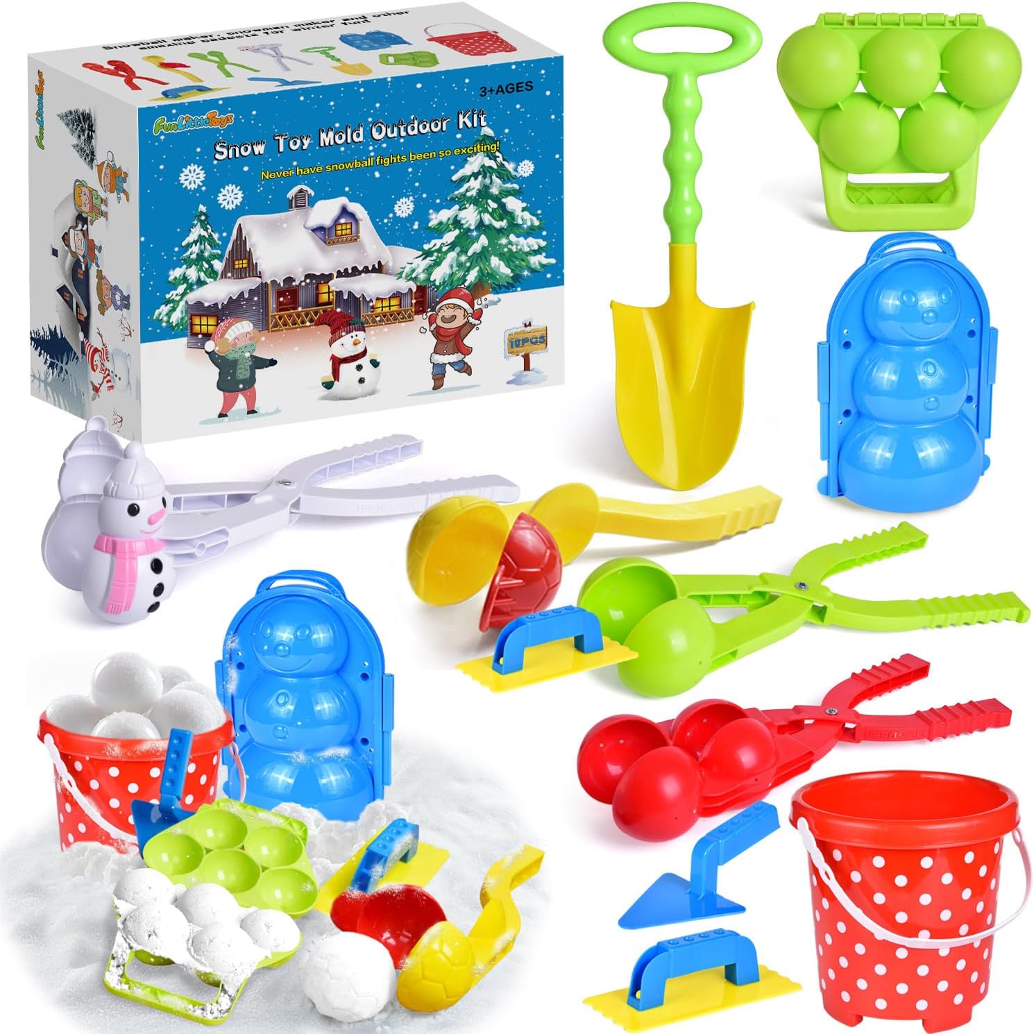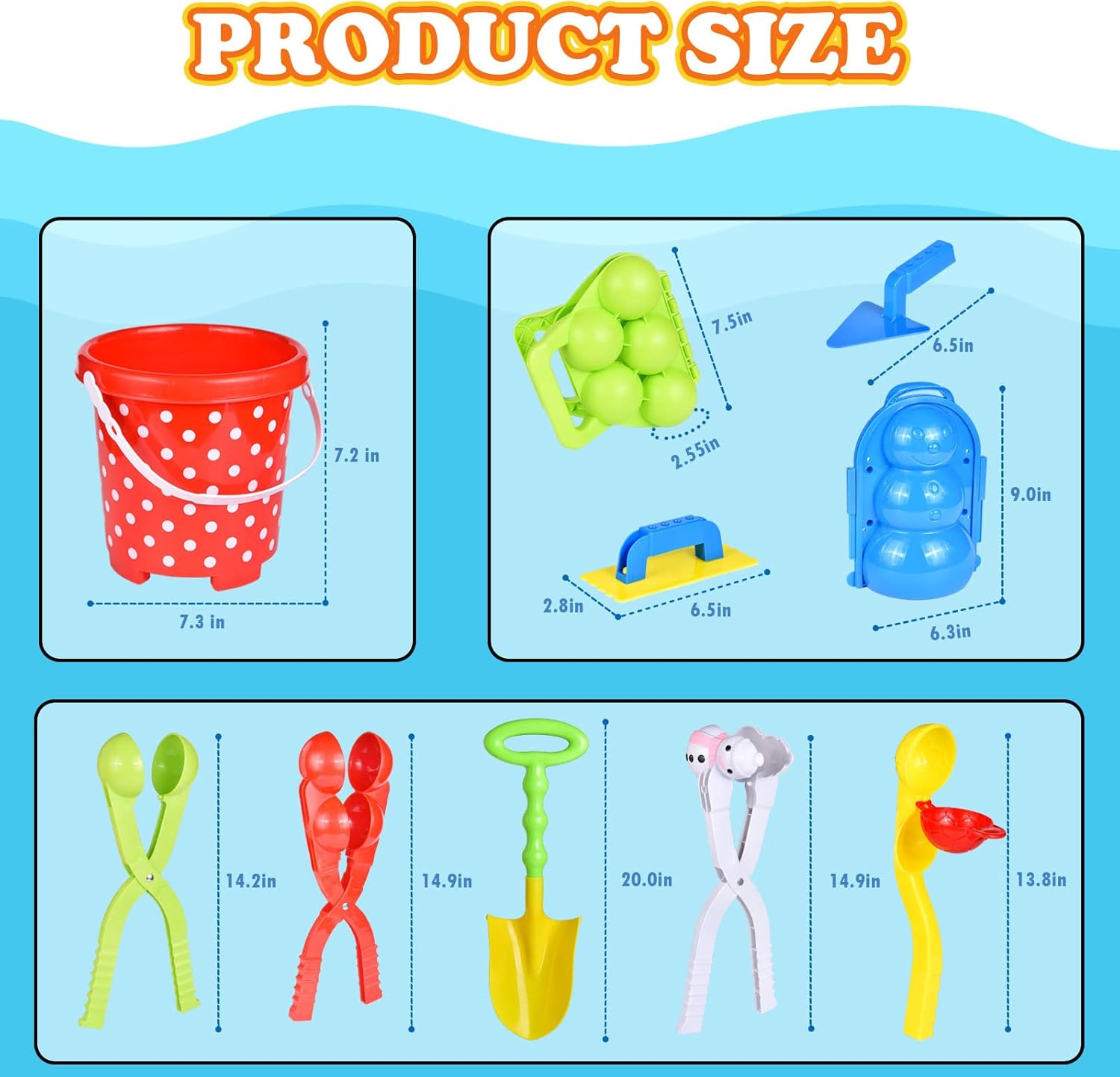 Bring this playset to the beach or into the snow. It's everything you need for a fun time. There are 12 unique pieces of various sand and snow molds, a sand or snowball maker, a snow fort building block, shovels, buckets, and a bonus mesh bag for easy clean up. The beach toys kit is a must-have for your little ones wishing to maximize their experience of white winter weather. From the snowy slopes to the sandy shores, this sand snow beach playset kit is sure to add an element of shaping-fun to a variety of environments. Whether the weather, your kids can fill up the mold with snow or sand, snap it together, and your snow creation is ready to roll! Your kids will definitely want to bring the snowball fight maker tools with them next time you are hitting the slopes, so why not bring it along when you’re surfing the shoreline!