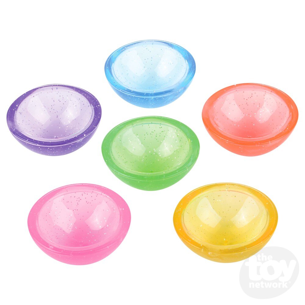 These 2.25" Large Glitter Poppers bounce high when turned inside out. Assorted colors. You will receive one chosen at random.