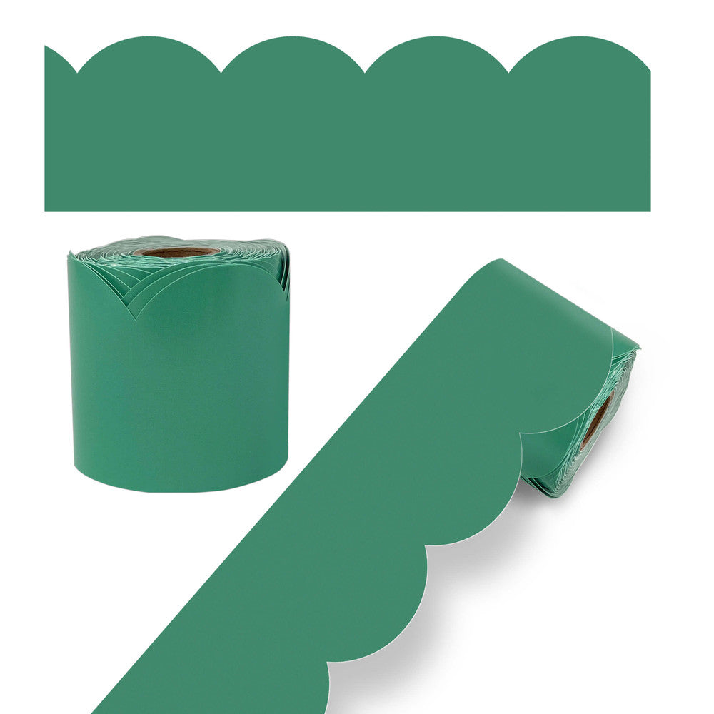 This large roll of scalloped bulletin board border is printed on thick but flexible paper that can be used for solo displays or multiple learning visuals. Decorate your learning space with a single layer border, or add layers to create dimension to your displays with ease. The pink bulletin board border measures 3 inches by 65 feet to decorate bulletin boards, desks, walls, lockers, and more with ease.
