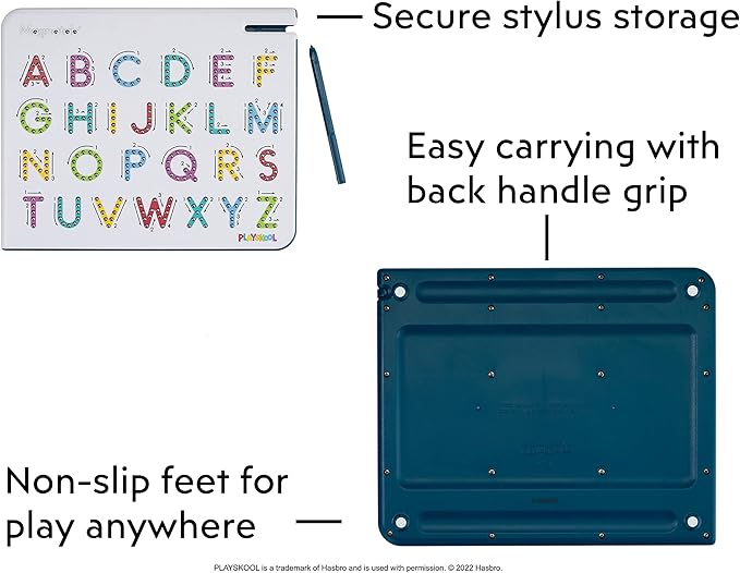 - Unlimited Potential — Children use the stylus and follow the arrows to practice writing letters! This magnetic board is a great learning resource on abc learning for toddlers.