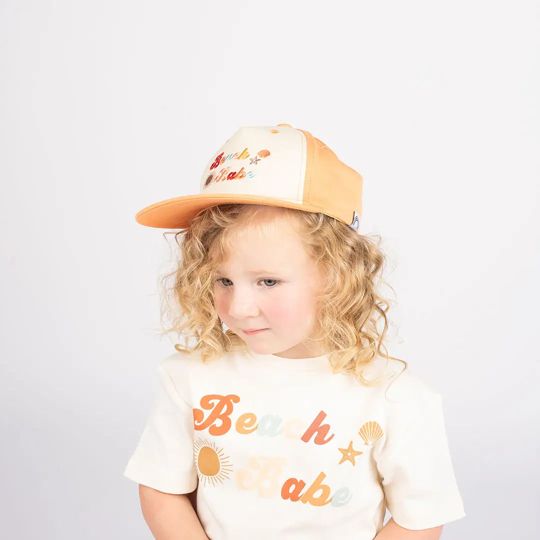Get your little one ready for a day at the beach with our Beach Babe Toddler Snapback Hat! Featuring a stylish dual-colored design with an adjustable closure for a snug fit, this hat is perfect for keeping the sun out of their face.