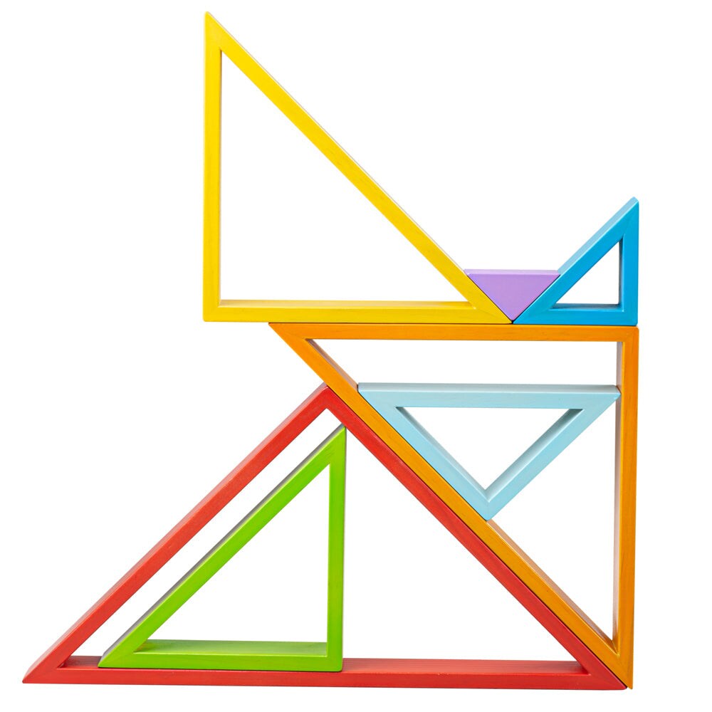 The play possibilities are endless with this versatile wooden stacking toy. These triangles are the ultimate Montessori toy as there are no guidelines or rules - creative kids can stack the triangles in any way they decide, discovering unique uses for each of the triangles. Little hands can assemble a variety of shapes and objects while learning all about different sizes and colours. A pretty rainbow stacking toy made from solid wood and coloured with non-toxic paints. Once playtime is over, this Stacking Toy Triangle makes a fun decoration for your little ones bedroom or nursery. Develops creativity, dexterity and spatial reasoning skills.