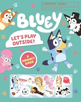 Use the magnets and your imagination to play along with Bluey and her friends! Play Keepy Uppy, I-Spy, Follow the Leader, and more. This activity book is perfect for Bluey fans!