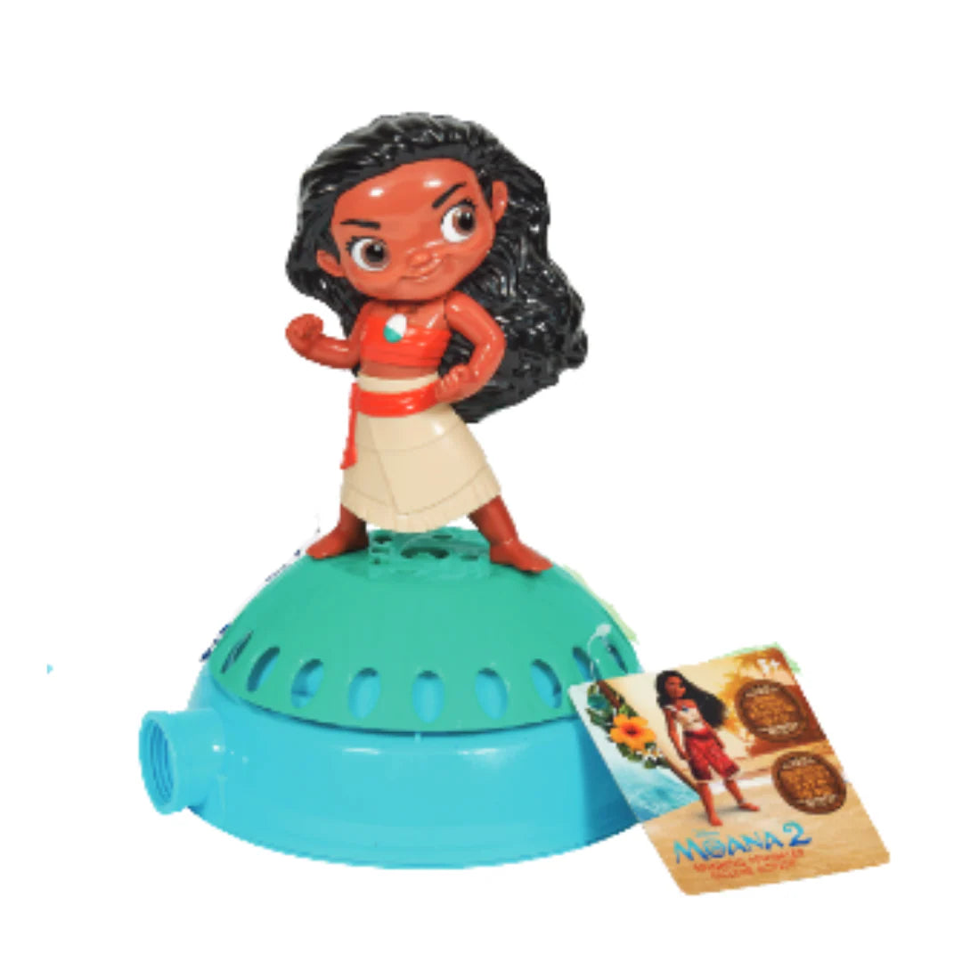 Classic water sprinkler with a sculpted character on top! Character spins as the water sprays! Sprays water up to 20 feet!