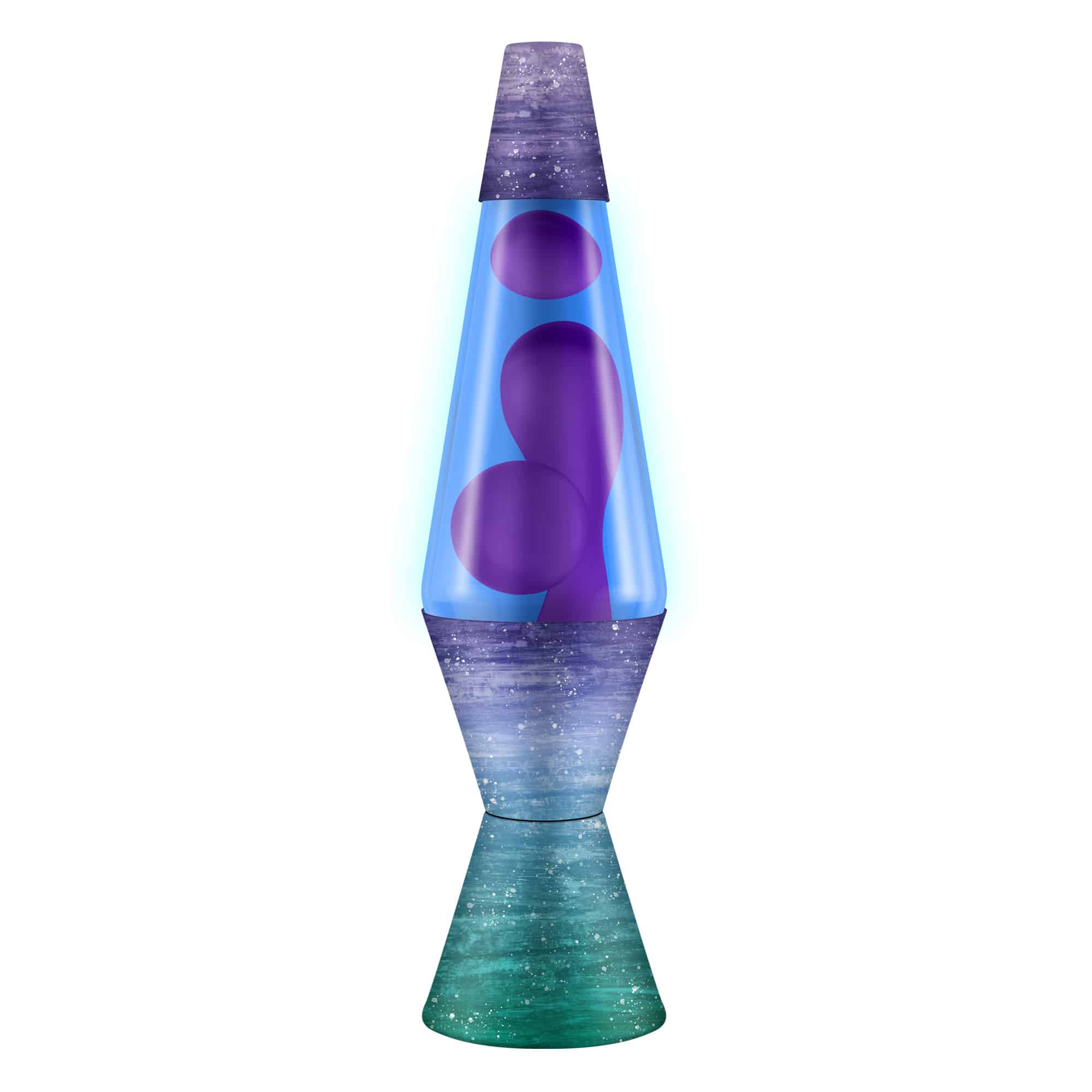 This 14.5″ LAVA® Lamp Ceramic Dip glows with class. Illuminate your mood as the wax blobs split, collide and ooze their way up and down the trademark-shaped globe for a calming, groovy, flow state of mind. With so many design options to choose from, it is no wonder LAVA Lamp has captivated for nearly 60 years. There is a style to fit every room, mood and personality. Lava lamp produces a soft warm light and mesmerizing visuals of ever changing, moving wax, gently rising up and down. Purple wax / clear liquid /hand painted blue glass dome / ceramic decal on aluminum base and cap. Includes 25 Watt light bulb. Plugs into a power outlet.
