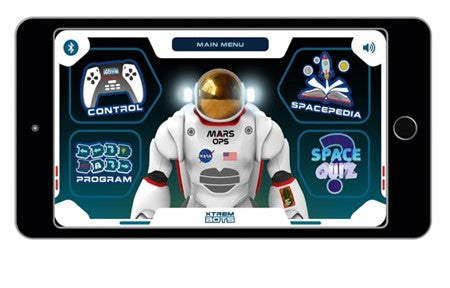 Discover the secrets of Space with Charlie the Astronaut. Connect to Charlie The Astronaut through the App via Bluetooth on your mobile device. From the App you can guide Charlie The Astronaut in two different ways, program him in a simple and fun way through its programming module (up to 200 actions) or direct Charlie with its remote-control system. Charlie The Astronaut is equipped with the most advanced technology, and you can control it through its smart control system (control with hand movements). This robot is powered by three AA 1.5V batteries (not included).
