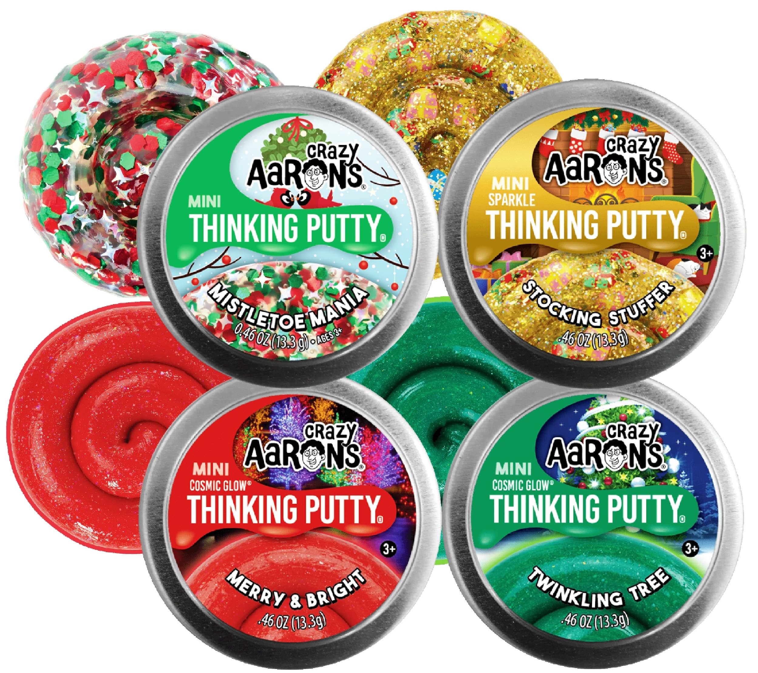Celebrate the holidays with Crazy Aaron's 2023 Holiday Putty Set! The perfect gift for anyone on your list, choose from four festive putties - Merry & Bright, Stocking Stuffer, Twinkling Tree, and Mistletoe Mania. Made in the USA and never dries out, this putty guarantees hours of fun.
