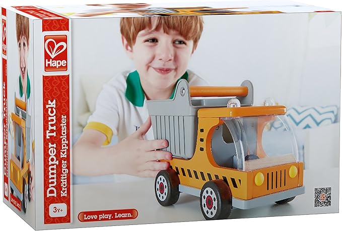 - WOODEN DUMP TRUCK: The Hape Dump Truck will sweep away all the debris from your construction site - fill up the dumper with blocks, sand, or whatever you want, roll it over to the dumpsite, and unload with ease! DURABLE WOODEN WHEELS: Carefully crafted wooden wheels protect your floors while your little one zooms around the house. UNLEASH THEIR IMAGINATION: Sparks imaginative play, role play, and interactive learning about real-life tasks for the curious builder who's ready to conquer any mess. KID-FRIENDLY FUN: Made of durable, child-friendly materials, including water-based paint and non-toxic finishes, this wooden truck is almost entirely natural and safe for play. CREATIVELY COOL GIFT: This construction vehicle toy is an awesome choice for boys and girls enchanted by trains, cars, boats, and things that go vroom, and will keep them entertained for hours on end!