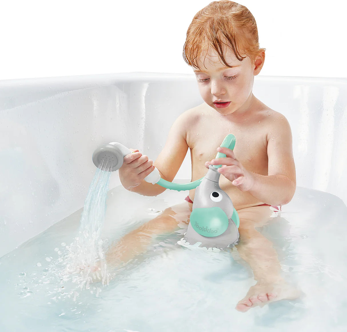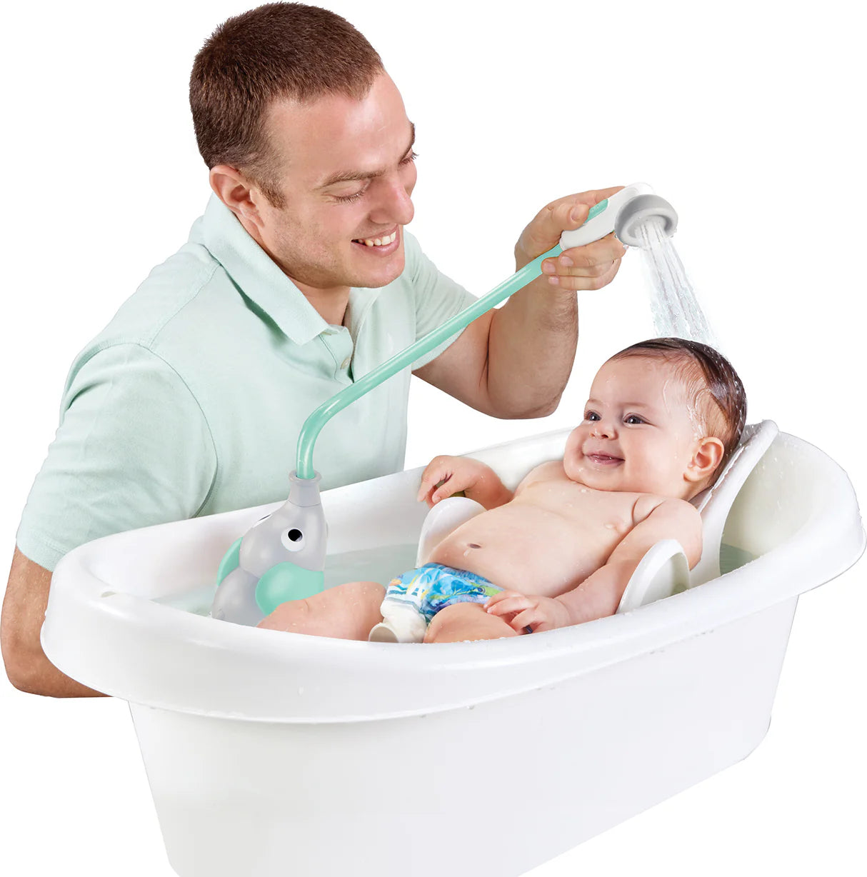 Elephant Baby Shower is a battery-operated compact and portable baby shower designed for ease of use by parents and gentle comfort for babies. Easy activation shower head with on/off nobs allowing easily pausing or continuing water flow. A gentle stream enables easy reach and wash of hair, neck and baby folds. Designed for safe, gentle and easy maneuvering while bathing babies. Suits all types of bath tubs.
