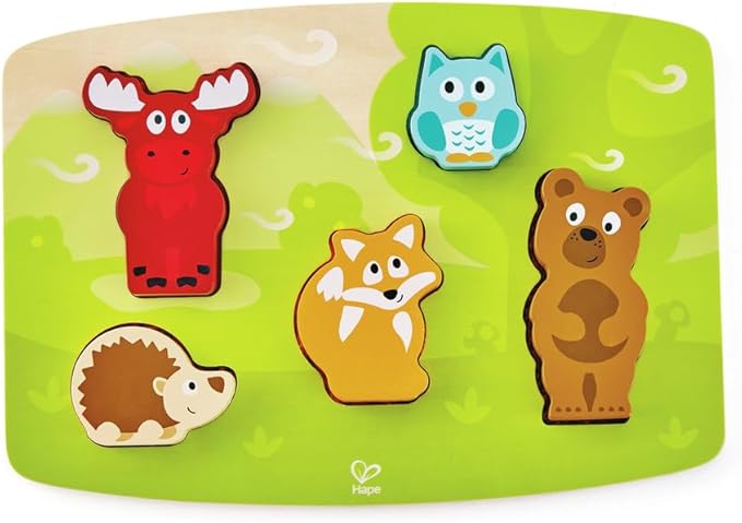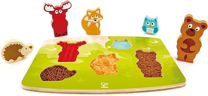 Discover a whole new level of puzzling with this imported wooden puzzle! Use your senses to find the perfect spot for each animal - whether by shape or texture. Get creative with adjectives to describe each unique animal's texture. Ideal for little ones, with child-safe paint and finishes that will stand up to playtime.
