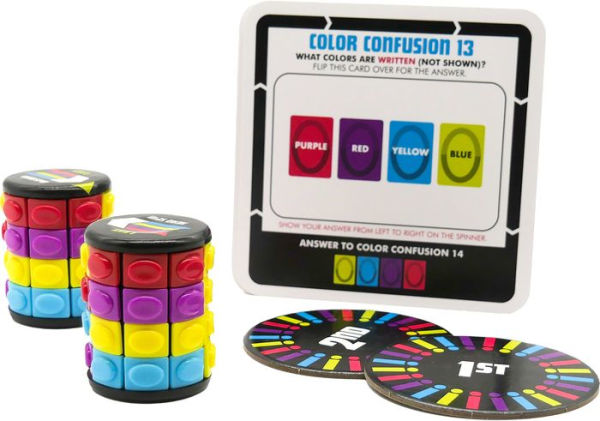 Head Spin is a fast-paced game where fidgety fingers race against masterminds. On each round players will try to figure out the color order based on the prompt. Then theyll show that answer on their spinner and place it on the landing pad. The first player to show the correct answer on their spinner wins the round.