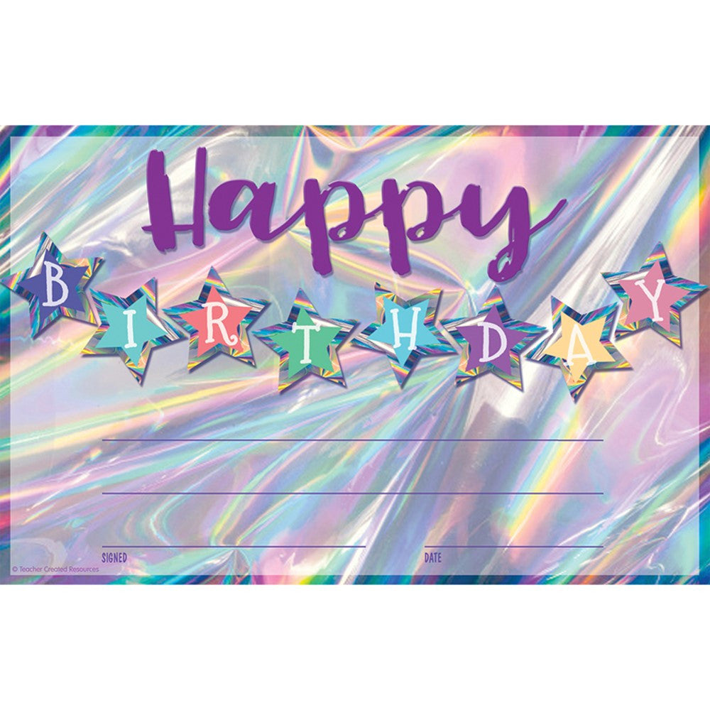 Printed on sturdy paper, these Iridescent Happy Birthday Awards will become keepsakes for the youngsters who receive them. General titles allow for personalized messages that are sure to build self-esteem. 8½" x 5½". 30 per pack.
