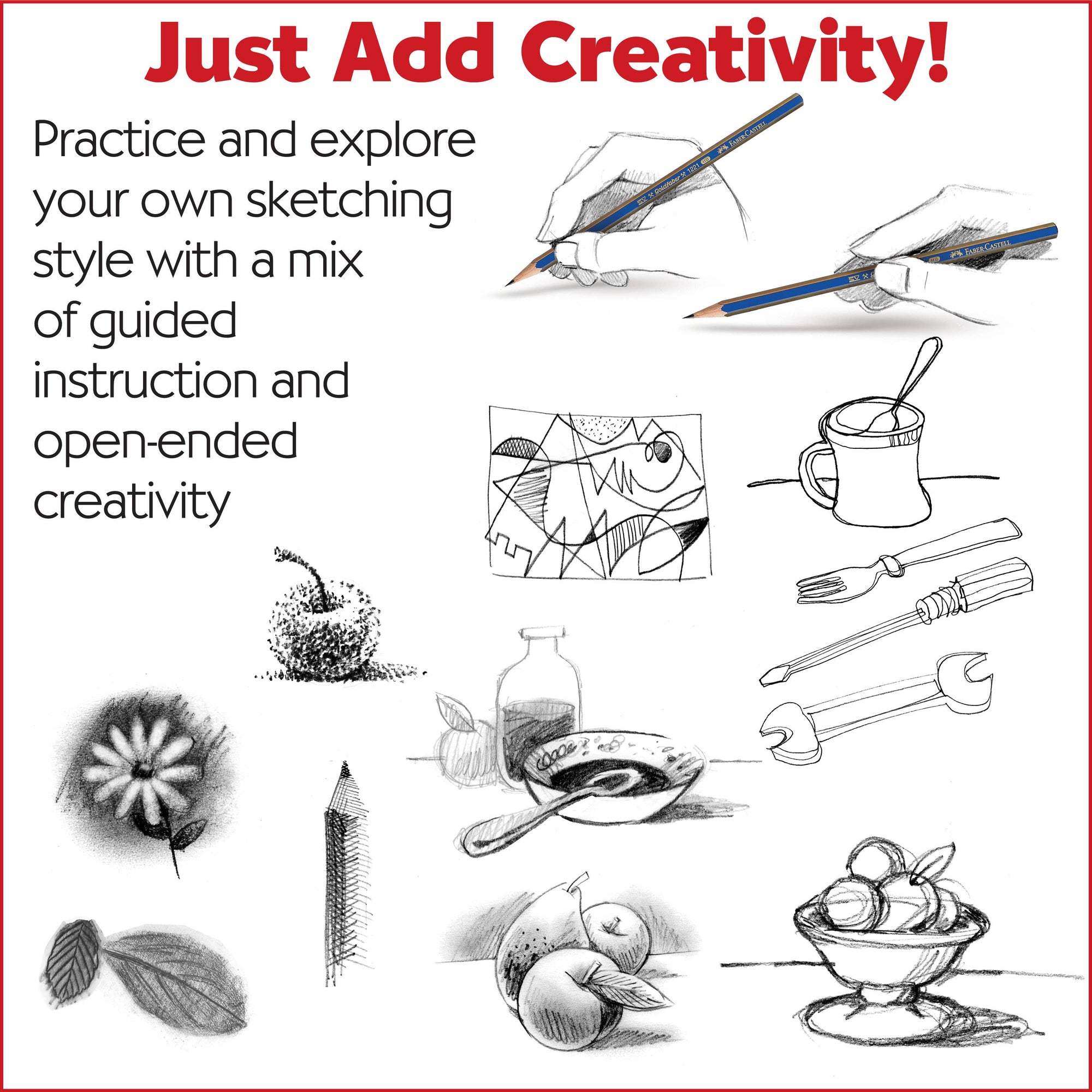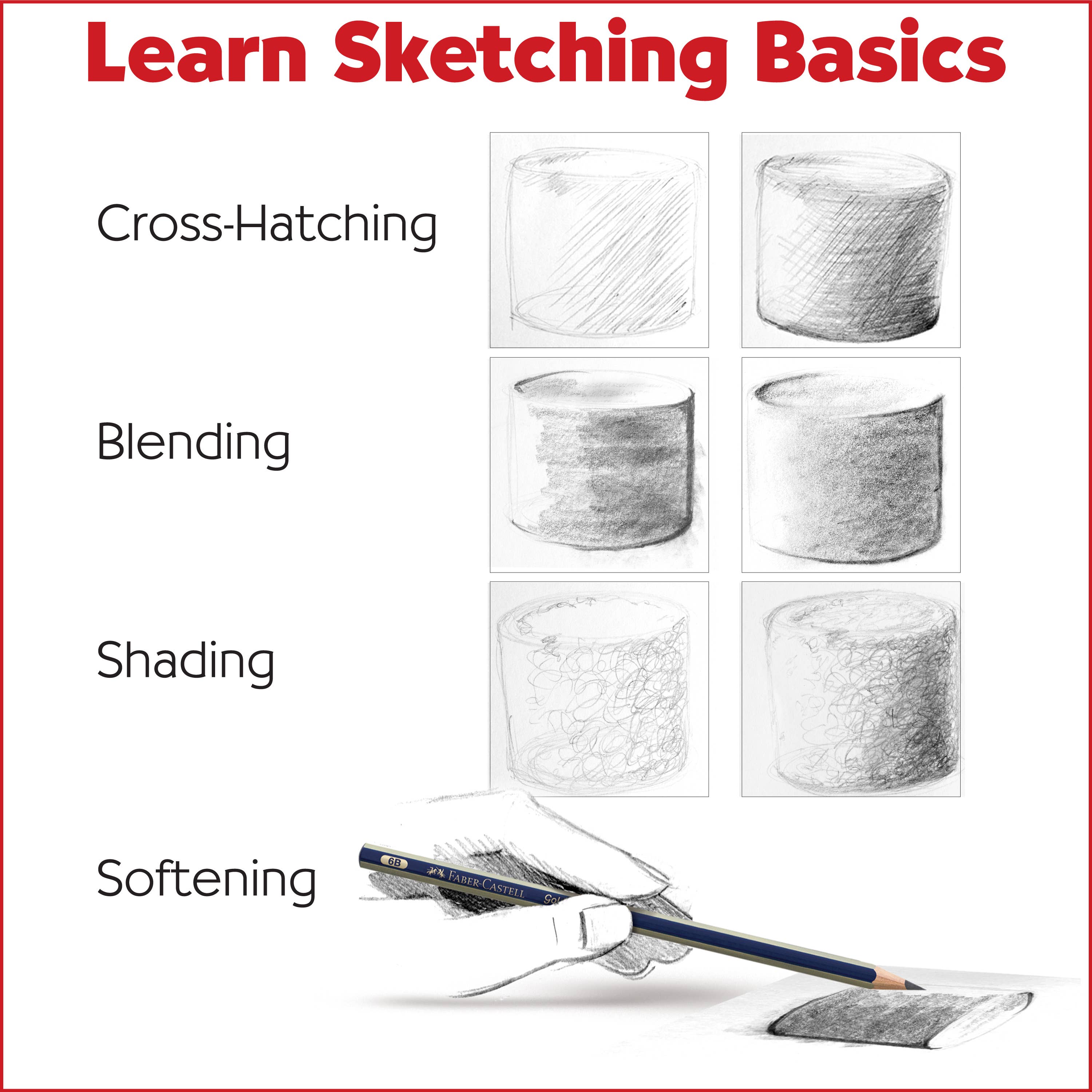 Learn sketching skills such as cross-hatching, blending, and softening with the guided instructions sheet. Take your drawings on the go!