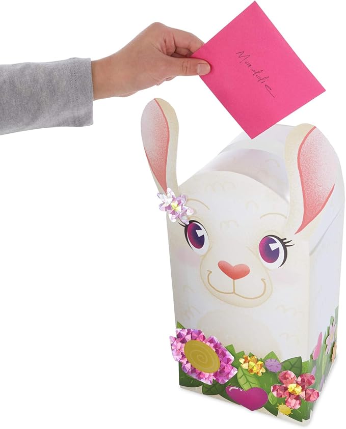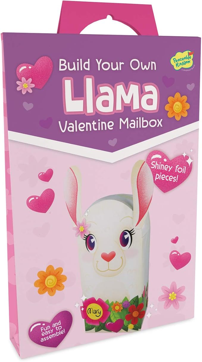 Peaceable Kingdom’s Llama Mailbox is an age-appropriate valentine kit perfect for your child’s Valentine’s Day party. It’s simple to assemble, fun to decorate and everything is included! Cardstock llama mailbox ready for assembly (stands at 12.5” when complete), foil accessories and instructions. (For ages 4 and up)