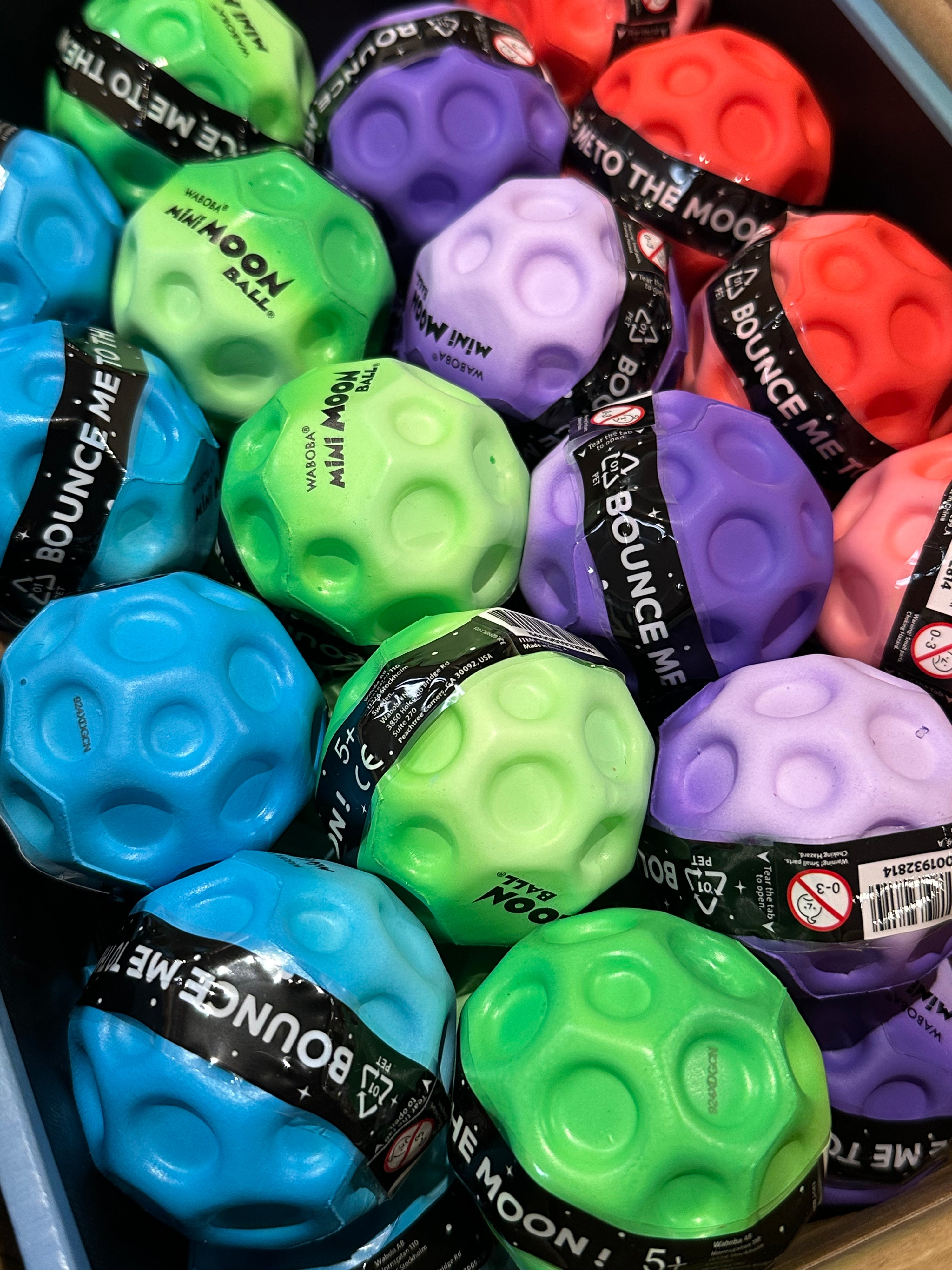 Bounce these babies. The mini Moons are 40% smaller in volume than the regular Moon Balls. But don't let their size fool you. They still bounce out of this world!
