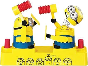 The Minions Hammer Pop is a fun game for real Minions fans. Cleverly press the red button so often in a row to hit the other Minion's head with the hammer at the right moment. If the head of your own Minion jumps up, you have lost. The sign is considered a defence and can be used targeted. Suitable for 2 players. For ages 4 and up.