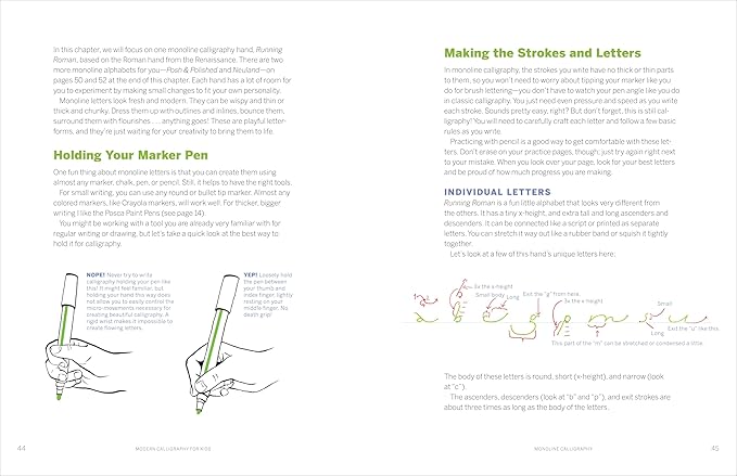 Modern Calligraphy for Kids is a fun guide to calligraphy that teaches kids, teens, and even adults handwriting and brush lettering skills using clear step-by-step instructions, fun projects, and lots of practice pages (because creating is the best way to learn calligraphy).