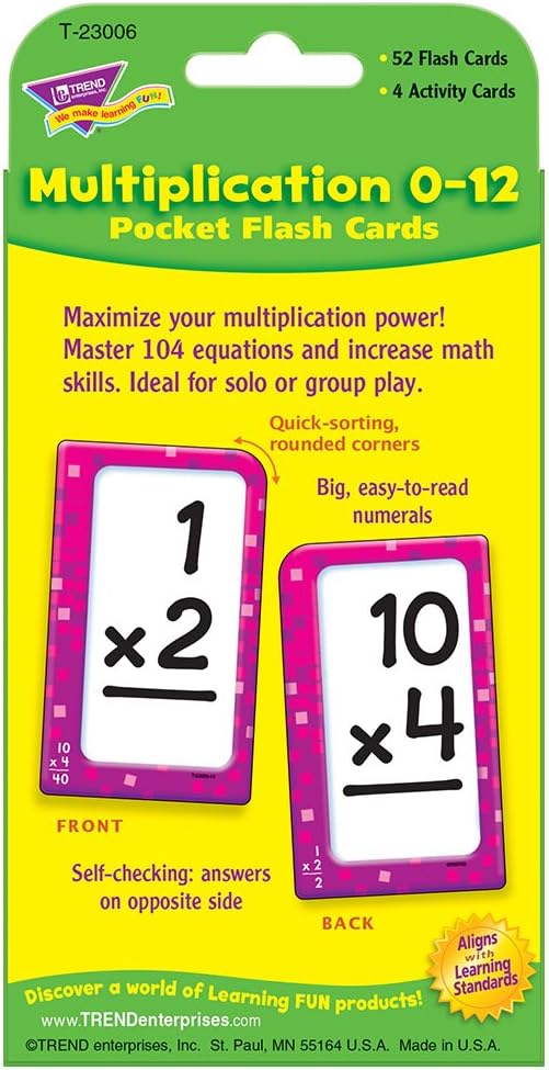 Multiplication 0-12 Pocket Flash Cards