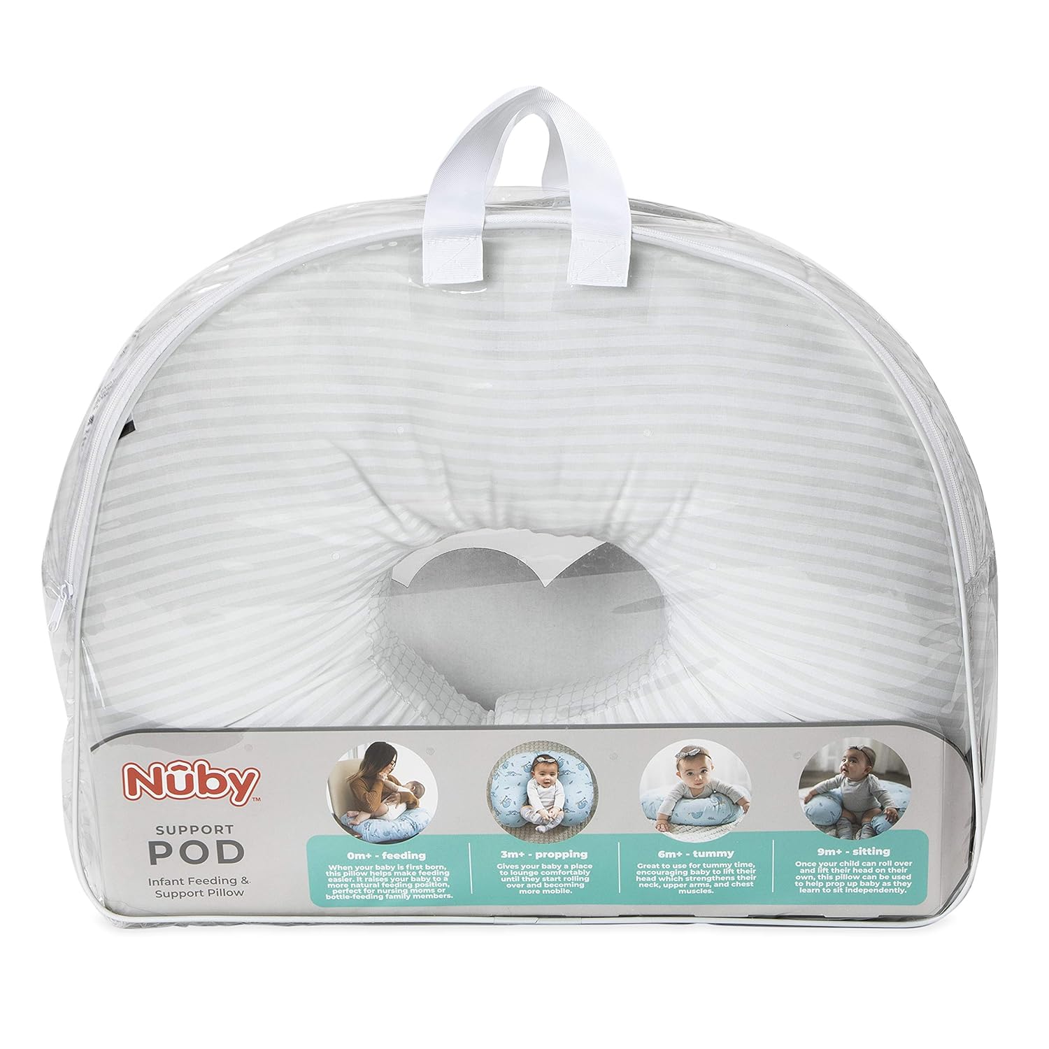 - NURSING PILLOW: Nuby Support Pod Infant Breastfeeding Pillow is designed to adapt during your baby's first year through nursing and bottle feeding; Perfect addition to your postpartum essentials
