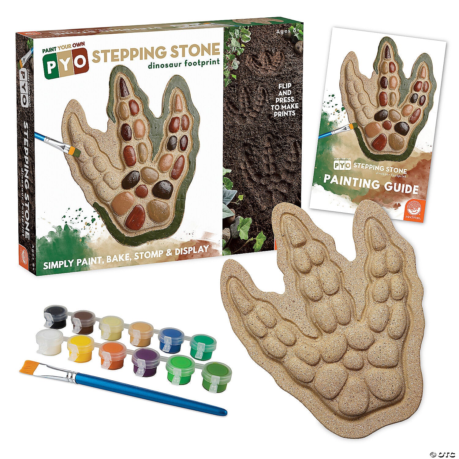 The dinosaur trend is larger than life and MindWare’s newest Paint Your Own Stepping Stone kit will make a giant impression! This dino footprint does double duty: first by creating mysterious tracks in the ground, then as a custom-painted garden accent. These all-weather stepping stones are ready to paint right out of the box, no messy cement-mixing required. Oven bake the painted stone for a weather-resistant finish.