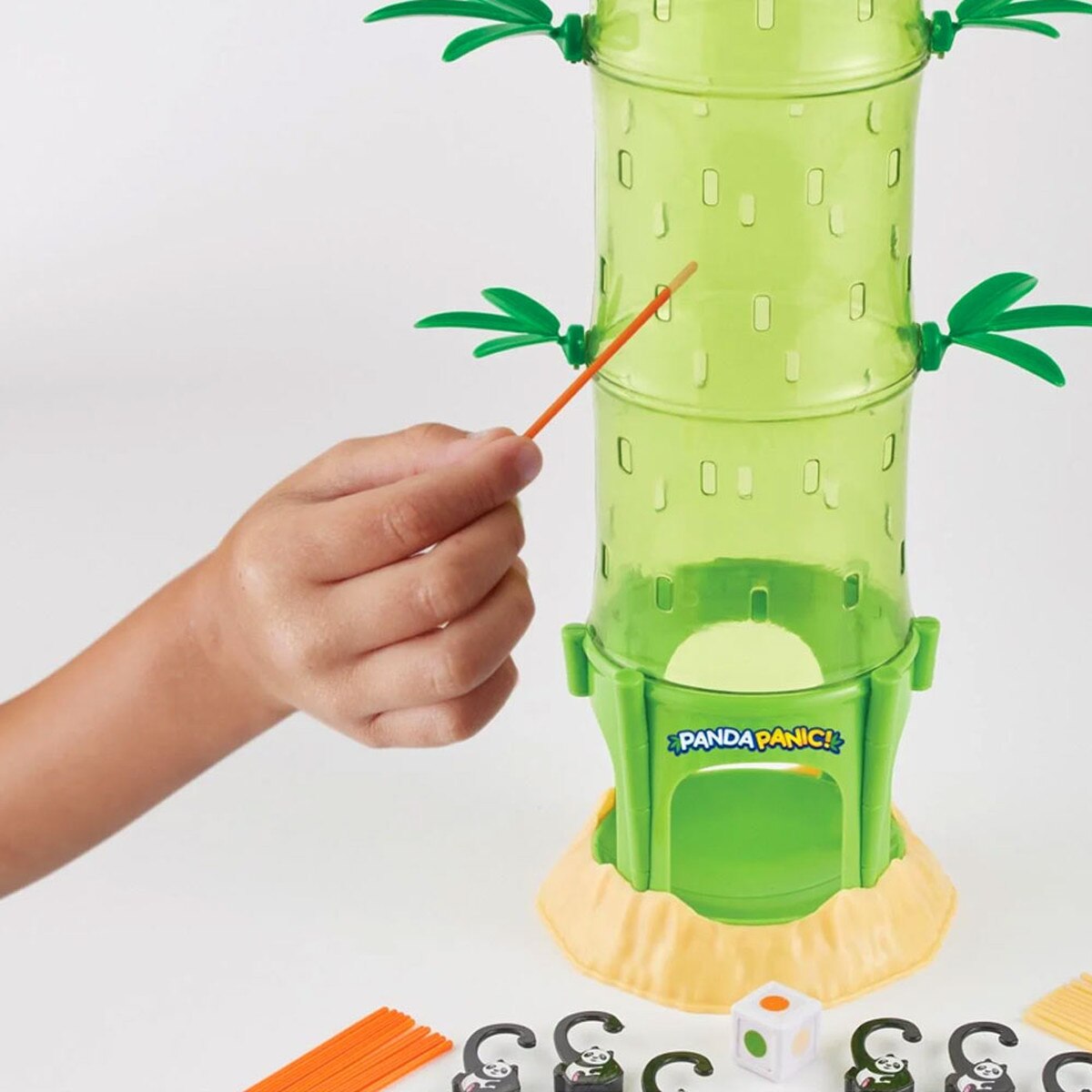 Don't let the pandas fall! This game encourages kids to think ahead before each move. On their turn they must pull out one stick of “bamboo” without causing any panda pals to go tumbling to the ground. Whoever has collected the least pandas at the end wins! For 2-4 players. Fans of Kerplunk and Jenga will enjoy.