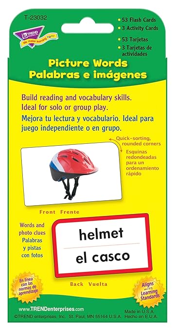 - Photographed image on front of each flashcard provides easy, real-life clue for English and Spanish word recall on back