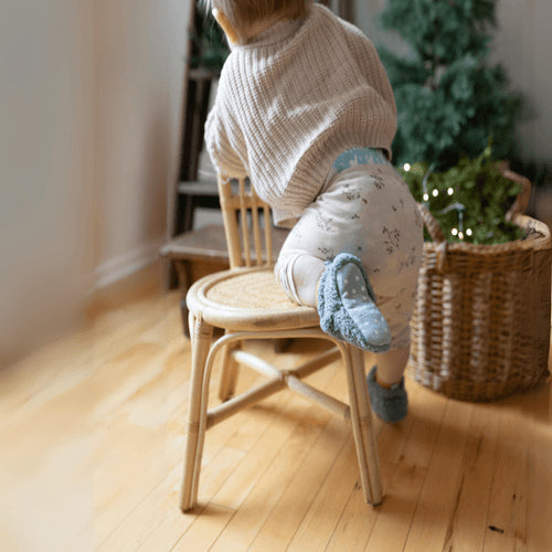 The Sherpa Snap Booties in Grey are a super cozy take on our baby bootie silhouette—best for crawlers, walkers, or any baby seeking adventure. They're made of super soft, fluffy sherpa fabric in a goes-with-everything grey, plus a two-snap closure for a customized fit. And the roomy fit allows little feet to bend, flex, and grow at a healthy pace.
