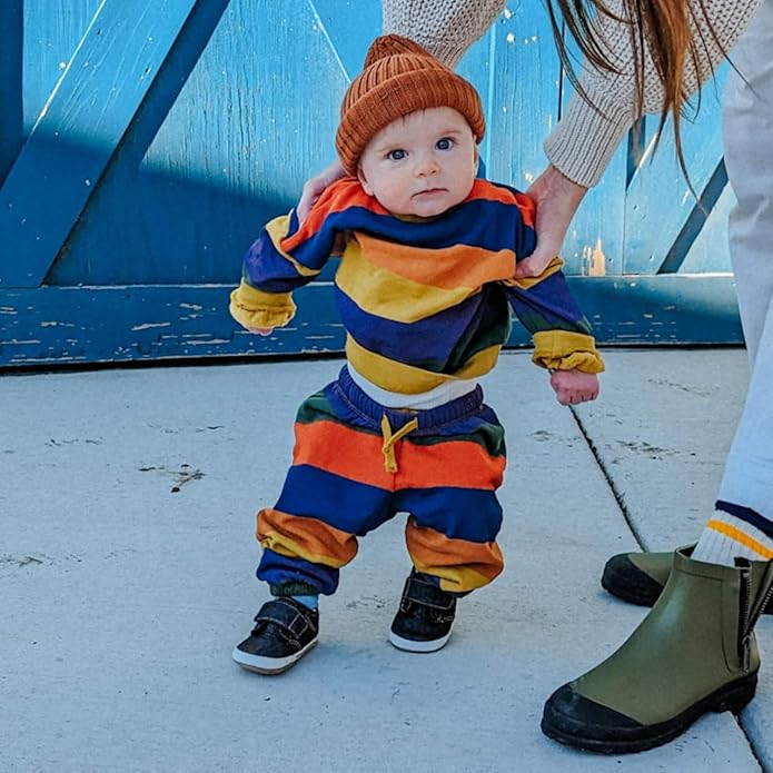 Keep your little one stylish and supported with Robeez Jerry Black First Kicks Shoes. These structured shoes have a soft suede sole for sizes 0-6 months and a split rubber sole for sizes 6 months and older to promote healthy foot development. Plus, they're easy to put on and have non-slip soles to prevent falls. (Padded insole provides extra protection!)