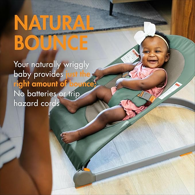 - Natural Bounce: The Slant baby bouncer uses the natural movement of your wriggly baby to provide just the right amount of bounce for comfort; No batteries or trip hazard cords to worry about