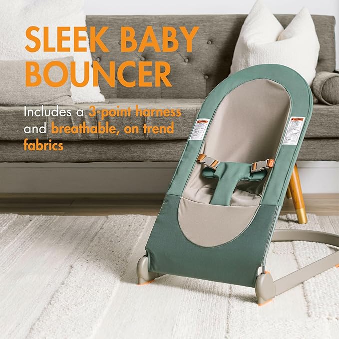 - Sleek Baby Bouncer: The Boon Slant provides your little one with a secure, comfy and stylish baby seat with a 3-point harness and breathable fabrics