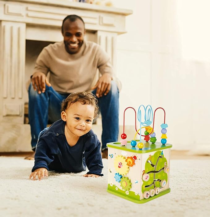 - 5-In-1 MULTIFUNCTIONAL GAMES – Has 5 different activities to keep your toddler busy including a bead maze, marble run, spinning flower gears, tree puzzle & shape sorter. Designed with safety in mind with rounded edges/non-toxic paint.