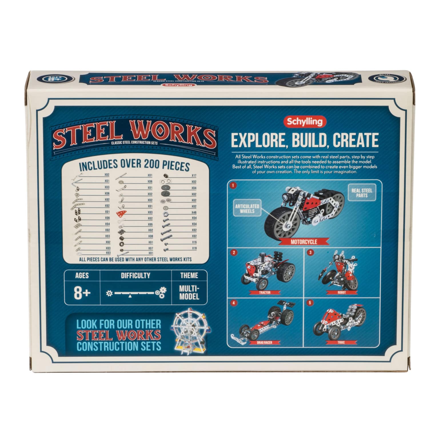 All Steel Works construction sets come with real steel parts, step by step illustrated instructions and all the tools needed to assemble the model. Best of all, Steel Works sets can be combined to create even bigger models of your own creation. The only limit is your imagination.