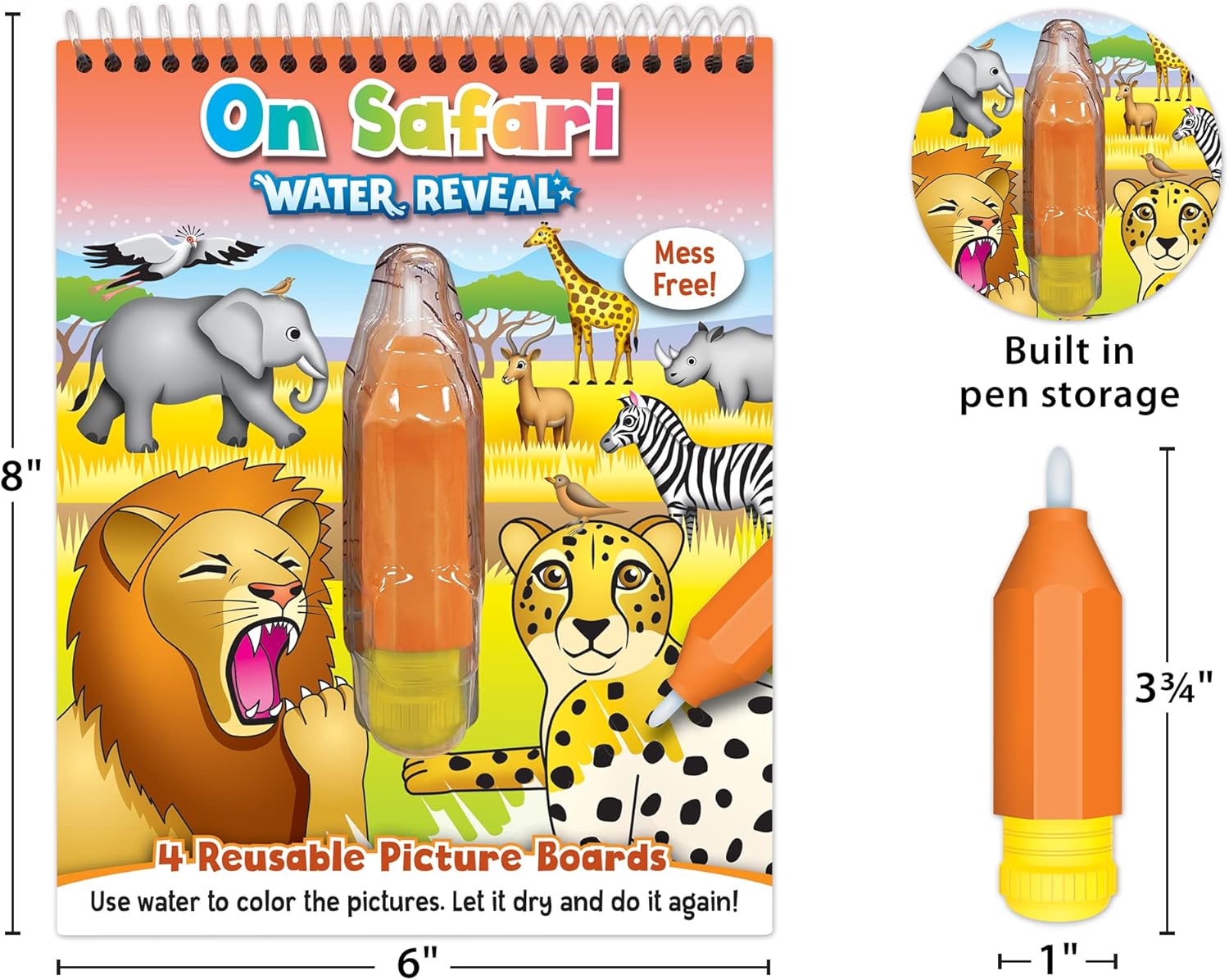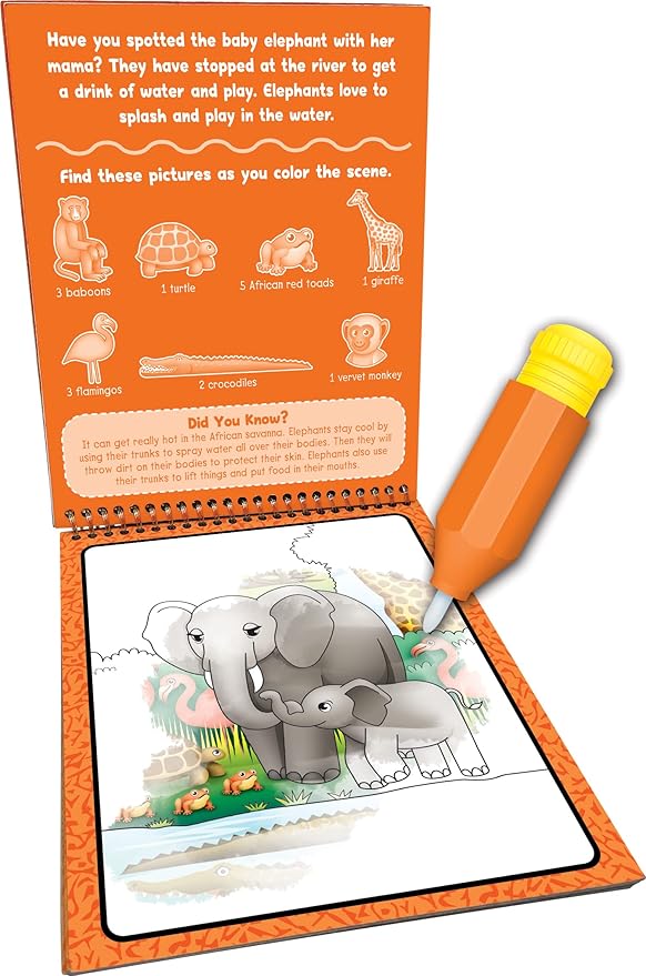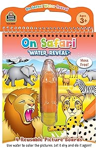 NO-MESS MAGIC: All the fun without the fuss! No paint, no markers, no stains - just use water! Kids can unleash their creativity without the mess. UNLIMITED FUN AND LEARNING: Color, let it dry, and do it all over again! With 4 reusable picture boards, the excitement never stops. ANIMAL ADVENTURE: Young explorers can search for safari animals, complete activities, and discover fascinating facts along the way. IDEAL FOR LITTLE ADVENTURERS: Created for ages 3 and up, this book promotes fine motor skills, imagination, and early education.