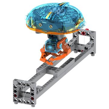 A robot fit for the circus! With this kit, you can build a robot that walks, step by step, along a tightrope. How? Thanks to the robot’s main component, a gyroscope, it can maintain its balance and perform this fun trick without falling over! Through eight experiments, you can explore the astonishing powers of the motorized gyroscope and understand the physics behind its amazing behaviors. Experiment with getting the robot to walk on different surfaces: a tightrope, on a solid tabletop, on a soft surface, and even on your arm! You can also experiment with the balancing behavior of the motorized gyroscope by itself, testing its ability to balance on its edge, on your finger, on a pole, and dangling from a string.