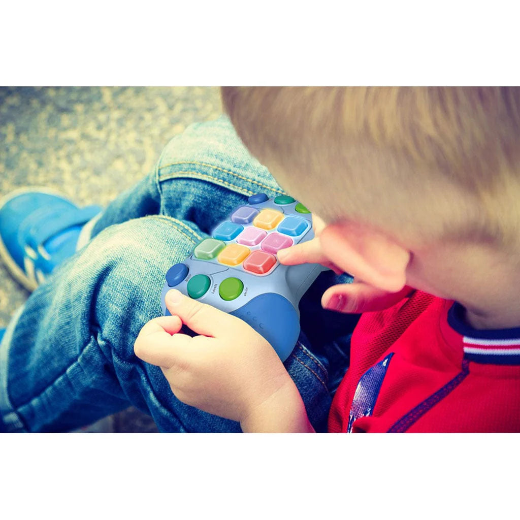 Take a trip back to the 80s with the handheld Whack Attack On-the-Go! Perfect for kids and grown-ups alike, this fun game helps burn off energy and sharpen focus by following flashing lights across five exciting solo modes: hamster, memory, chase, light, and music. Adjust the volume and lights to your liking, and even pause the action whenever you need. Ideal for after school, road trips, or a quick pre-dinner distraction. Runs on 3 AAA batteries (not included). For ages 4 and up.