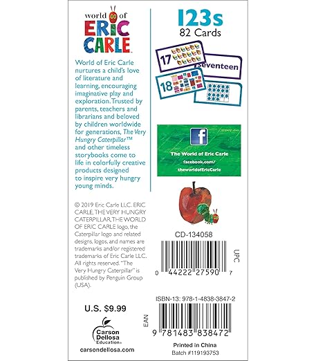 LEARNING TOOLS KIDS: Vibrant colors and well-loved figures from the imagination of Eric Carle will brighten and enliven any classroom. These can be used as review cards or for creative games that allow children to play and learn. Flash cards also allow children to develop thinking, decision-making, turn-taking, and social skills.